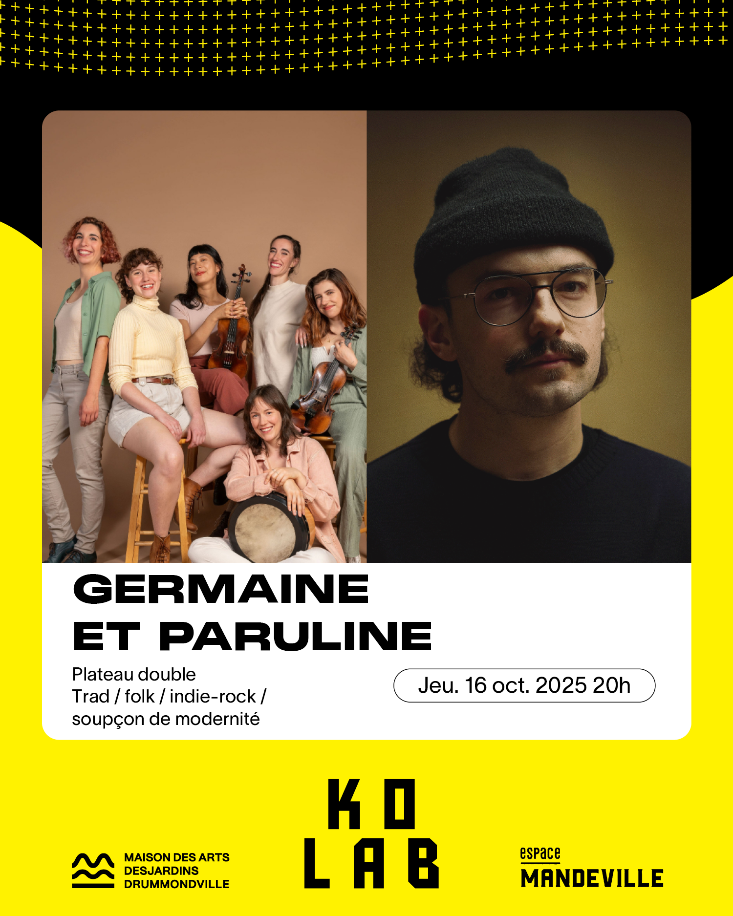 Germaine est un projet de musique traditionnelle alliant chant, violon, gigue et percussion, qui reprend les mots et les histoires des femmes d’autrefois à travers les chansons folkloriques, pour les faire résonner avec les enjeux féministes d’aujourd’hui.
